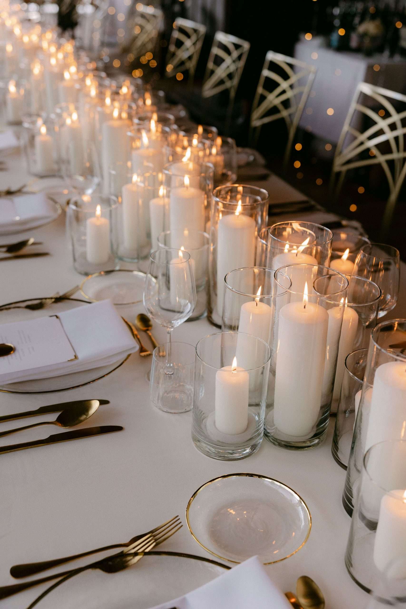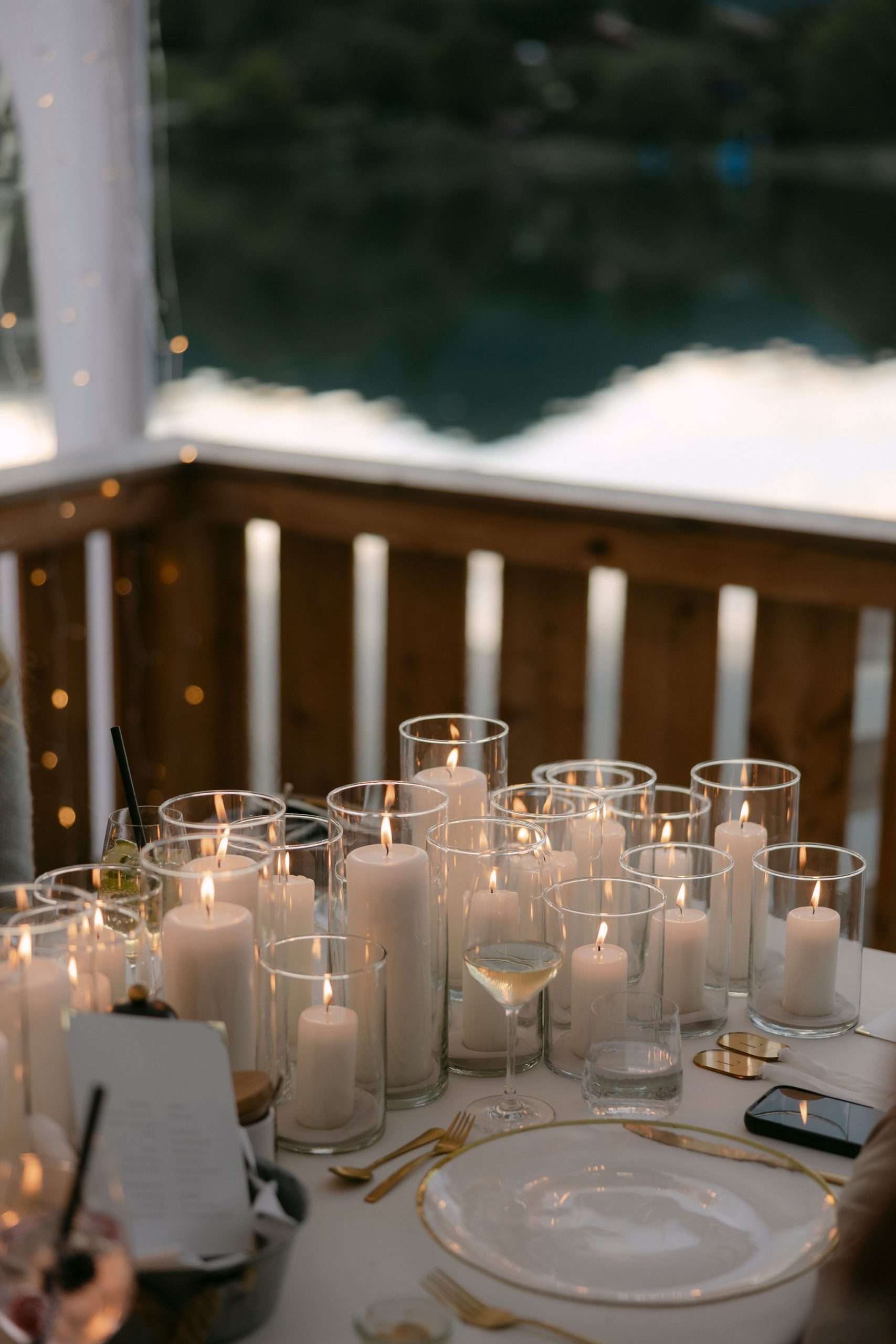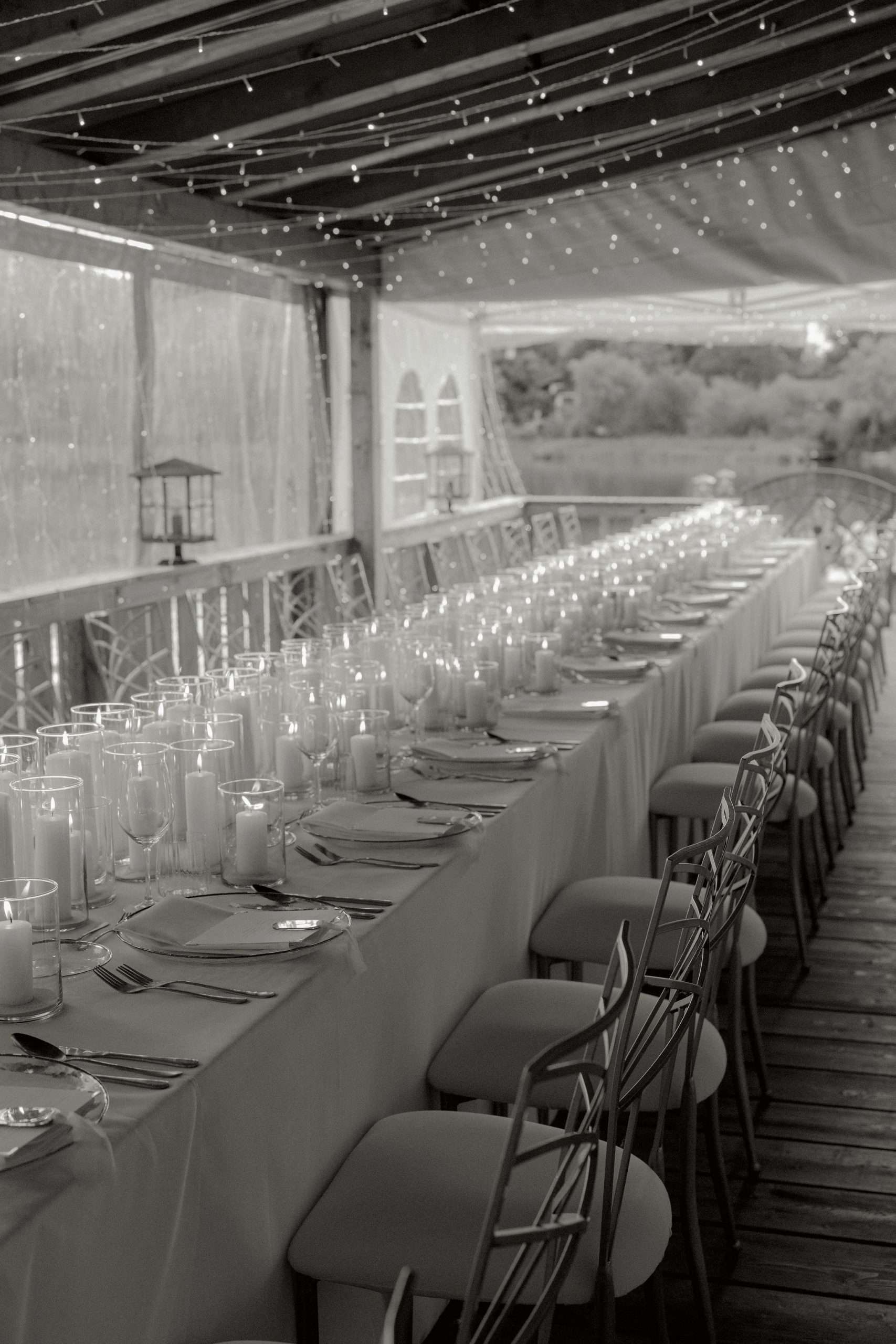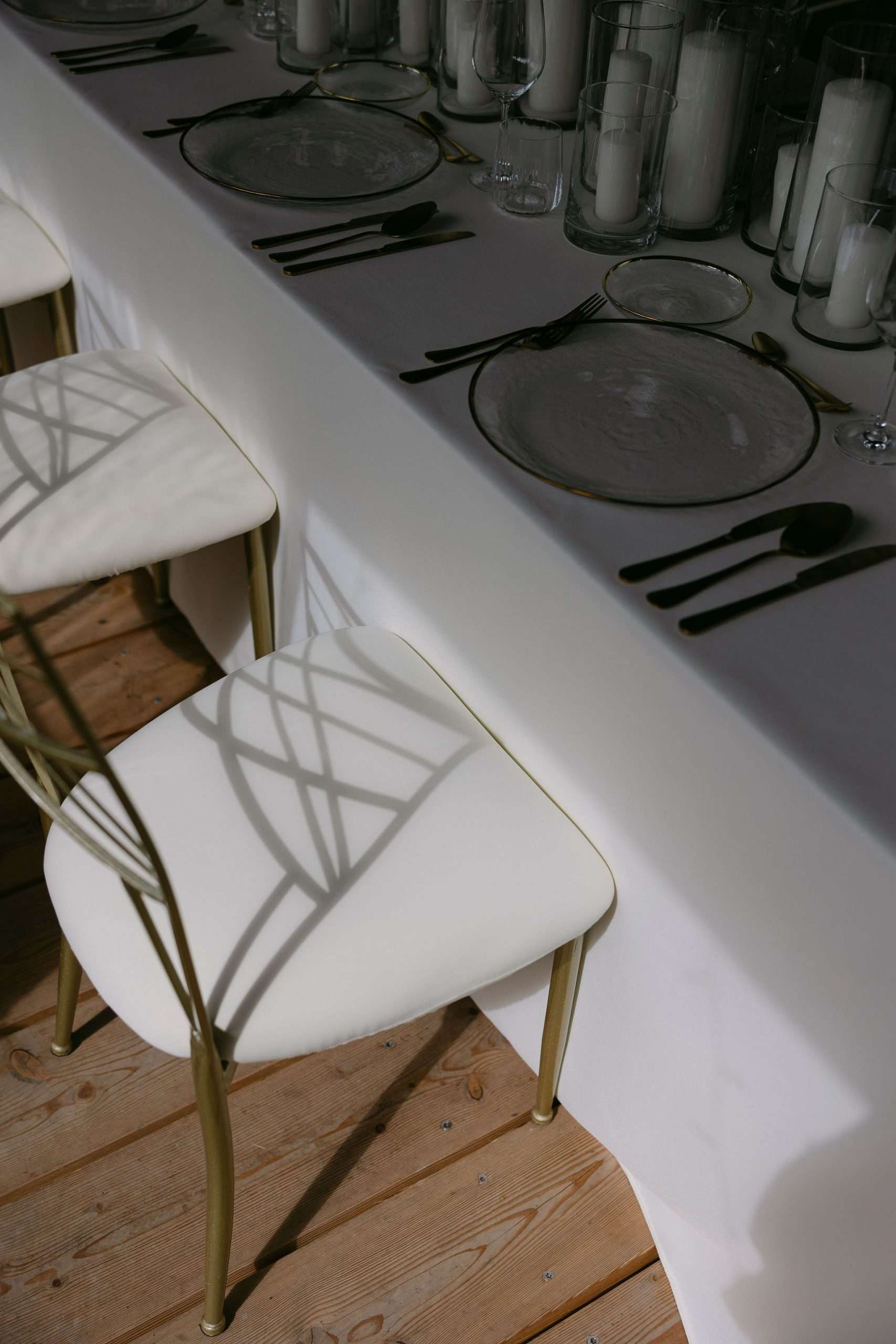 Dieser Look steht für zeitlose Eleganz, warme Lichtstimmung und eine moderne Interpretation klassischer Hochzeitsästhetik. Candlelight Elegance am Tegernsee verbindet lange, weiß eingedeckte Tafeln mit feinem Kerzenlicht, klarer Papeterie und hochwertigen Materialien. Die bewusst reduzierte Farbwelt aus Weiß, Creme und warmen Goldtönen schafft eine ruhige, harmonische Atmosphäre mit editorialem Anspruch.
