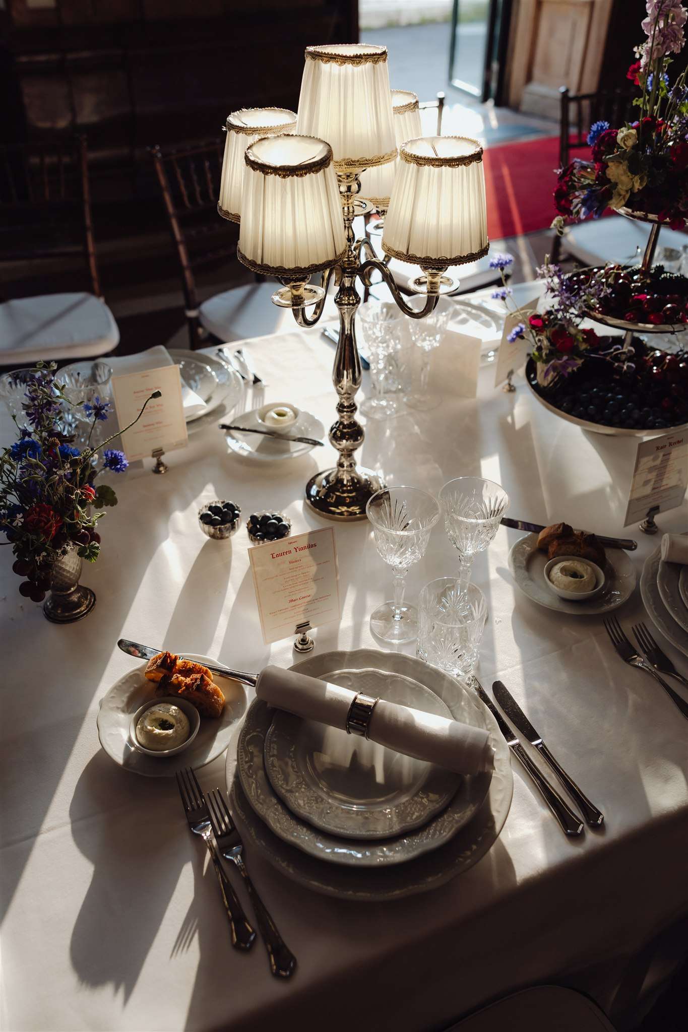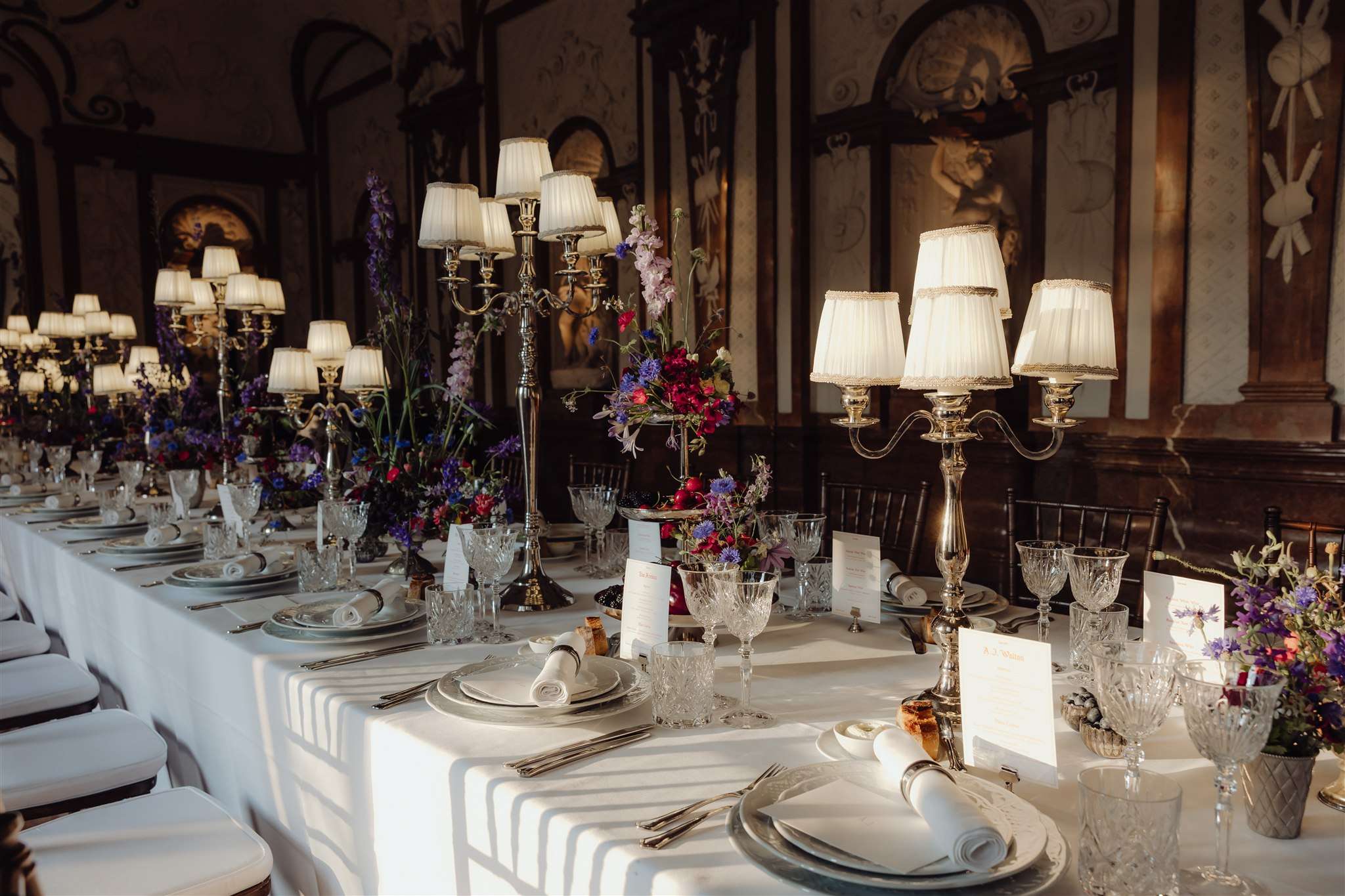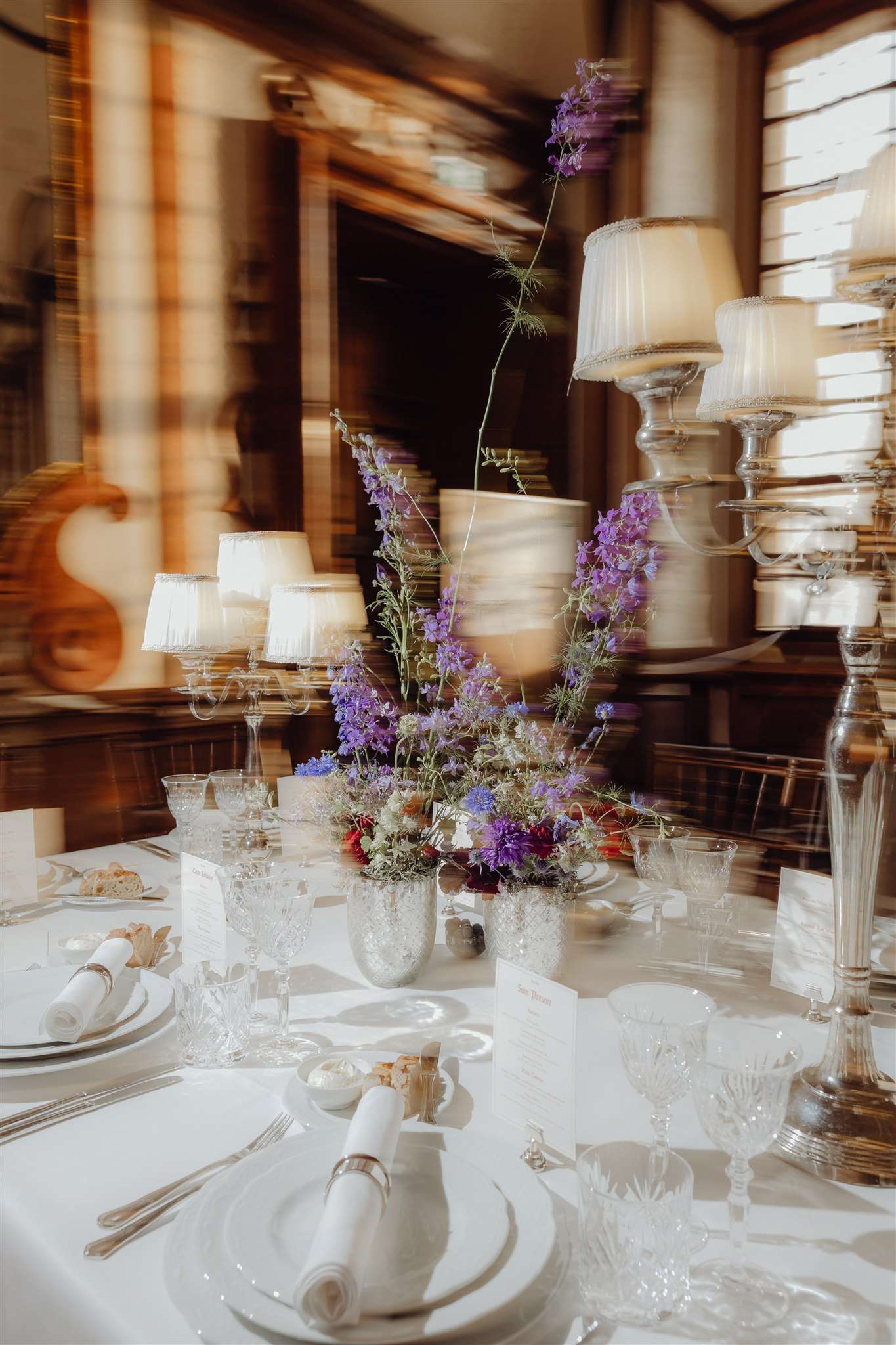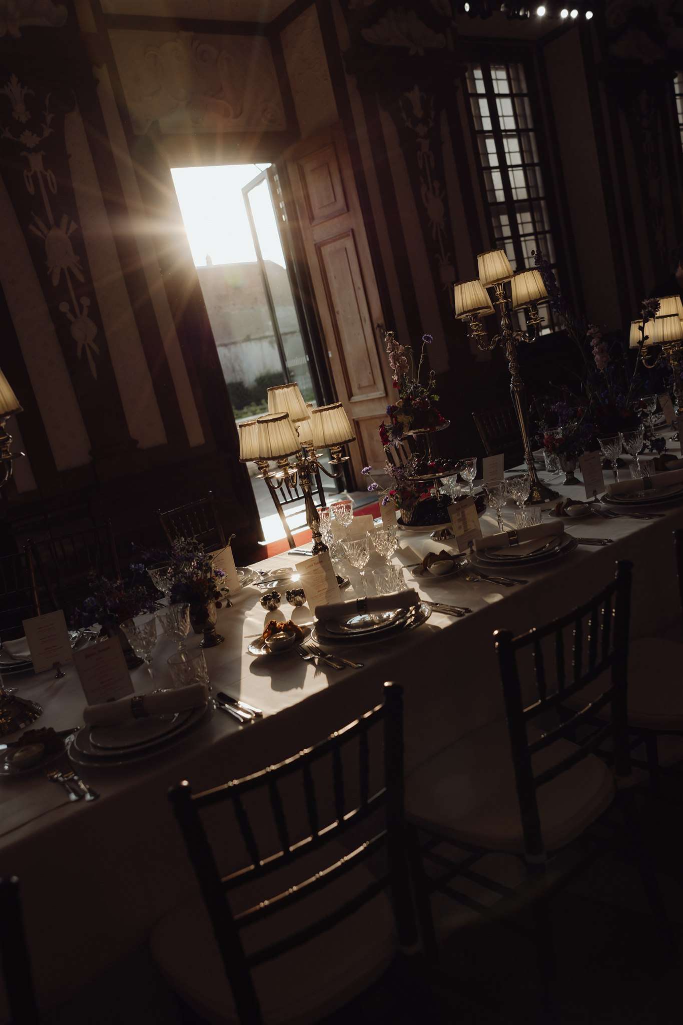 Das barocke Ambiente des Schloss Belvedere in Wien bot den perfekten Rahmen für ein edles und modernes Hochzeitskonzept. Die langen Tafeln wurden mit weißen Tischdecken, eleganten Chiavari-Stühlen und funkelnden Kristallgläsern eingedeckt. Silberne Kandelaber mit sanftem Licht setzten glanzvolle Akzente und sorgten für eine festliche Stimmung.