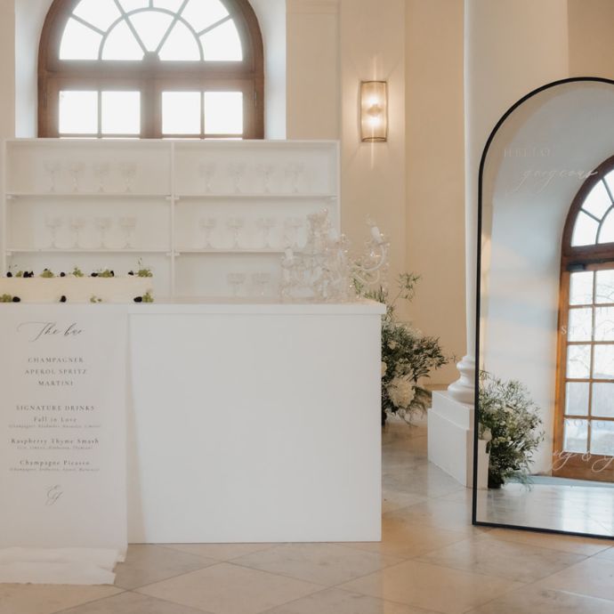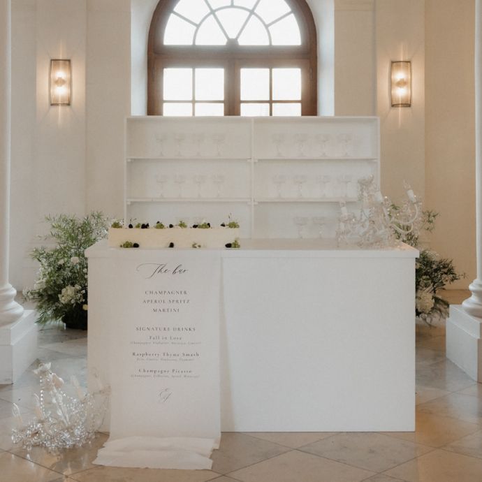 Das Barlement, Grace bringt pure Eleganz und moderne Raffinesse in dein Eventdesign. Mit seinem minimalistischen, zeitlosen Look fügt sich diese stilvolle Bar nahtlos in jede Location ein – perfekt für Hochzeiten, exklusive Events oder Firmenfeiern. Ihre schlichte, helle Optik verleiht jedem Raum eine edle Note und sorgt für eine harmonische Atmosphäre.