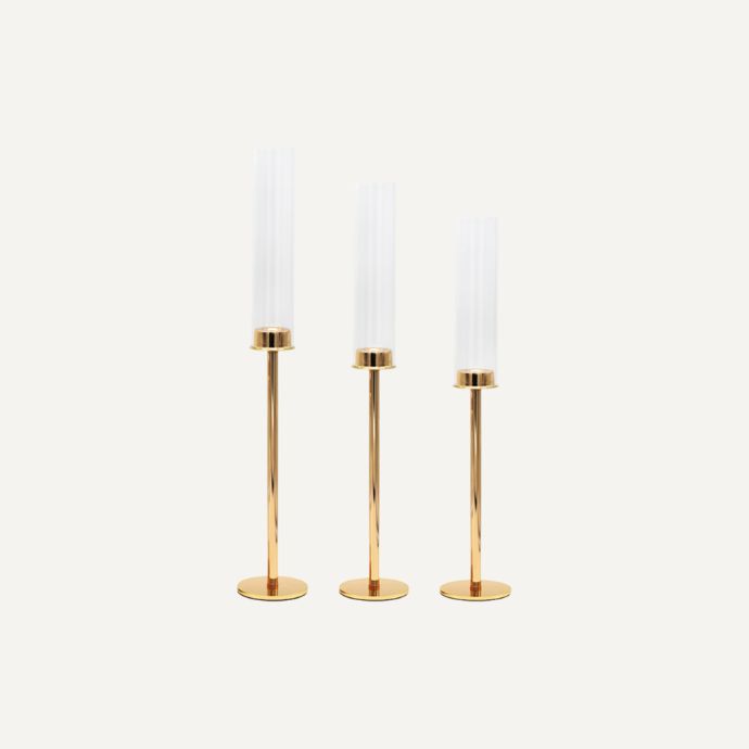 Kerzenhalter 3er-Set mit Glasaufsatz, gold