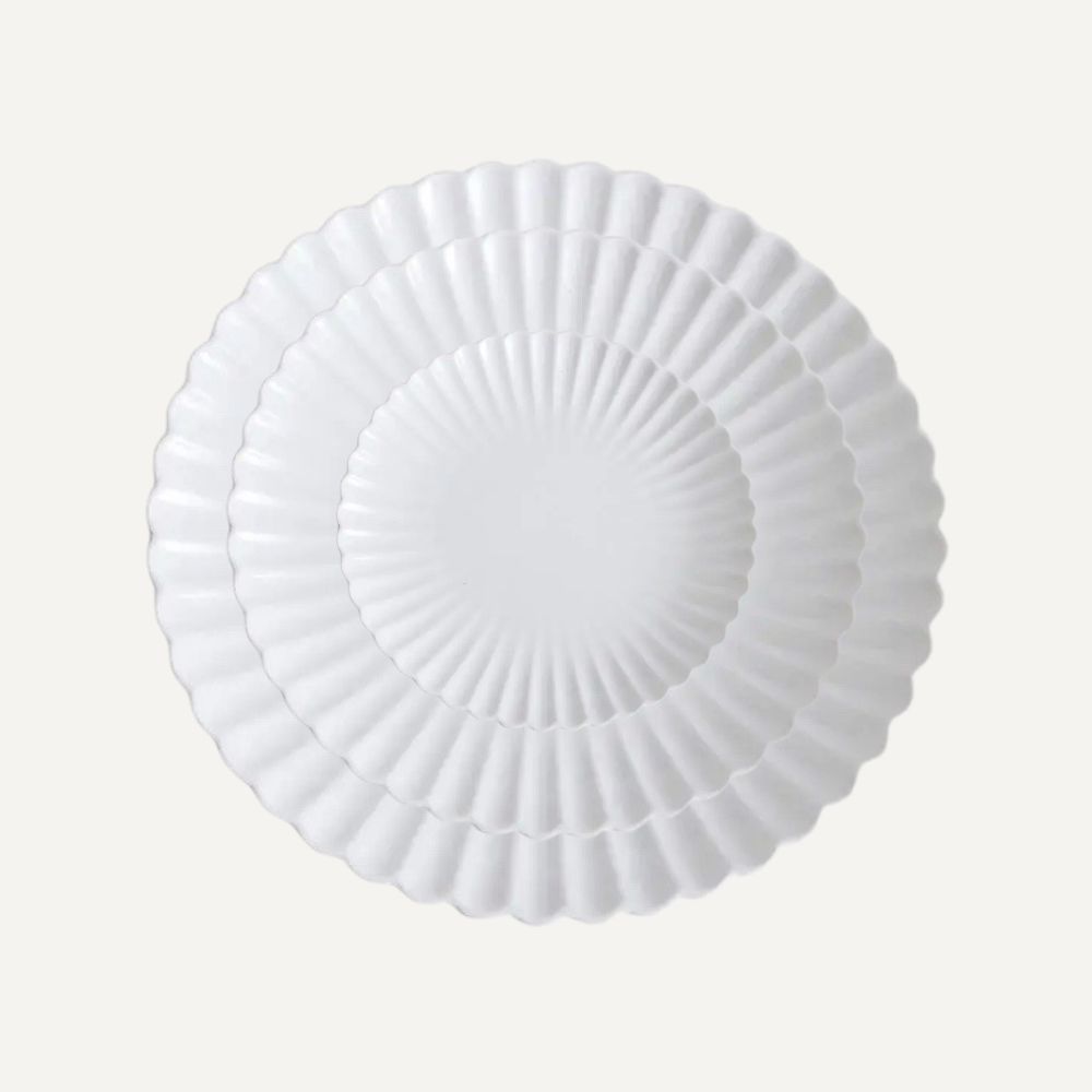 Mit der Tellerserie Wave bringst du zeitlose Eleganz auf deine Hochzeit oder dein Event. Diese edlen Teller bestechen durch ihre geschwungenen Linien und das moderne Design, das jede Tischdekoration aufwertet. Die schlichte Farbgebung und die besondere Form passen perfekt zu unterschiedlichsten Stilrichtungen und Themen, egal ob romantisch, minimalistisch oder boho-chic.