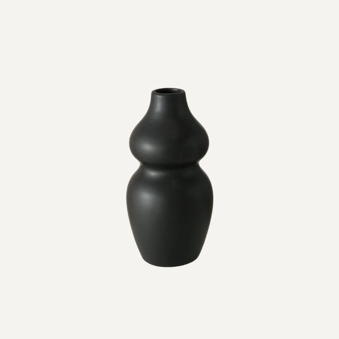 Die formschöne Vase in einem matten Schwarzton sieht einfach zauberhaft aus. Die Vasen passen zu jedem Look und lassen die Blumen strahlen.